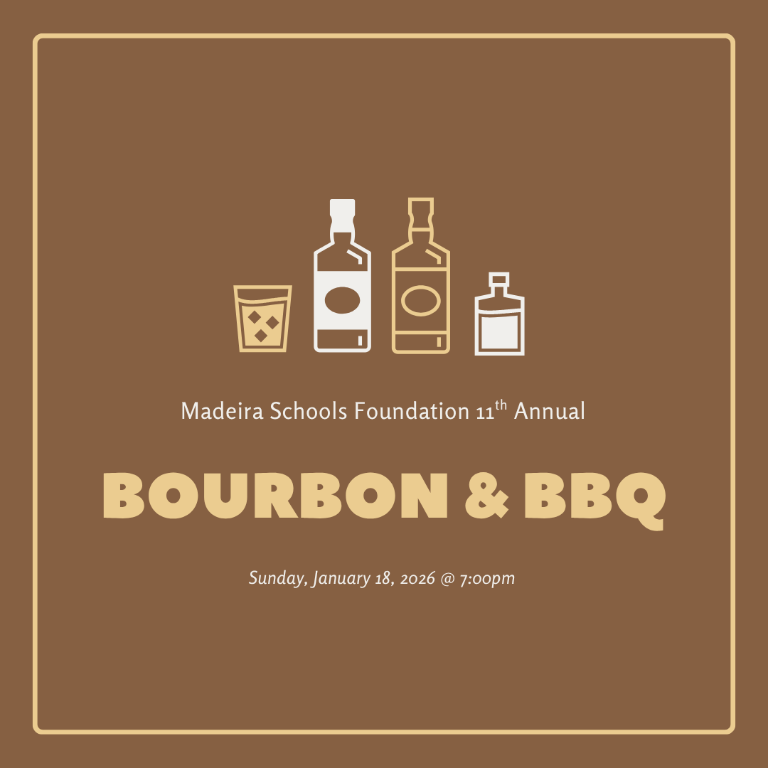 The Madeira Schools Foundation Bourbon & BBQ event is coming up on Sunday, January 18, 2026. We’re excited to host the event in Madeira at X-Golf Cincinnati! A limited number of sponsorships are available, offering excellent visibility for your business or organization while directly supporting Madeira Schools.